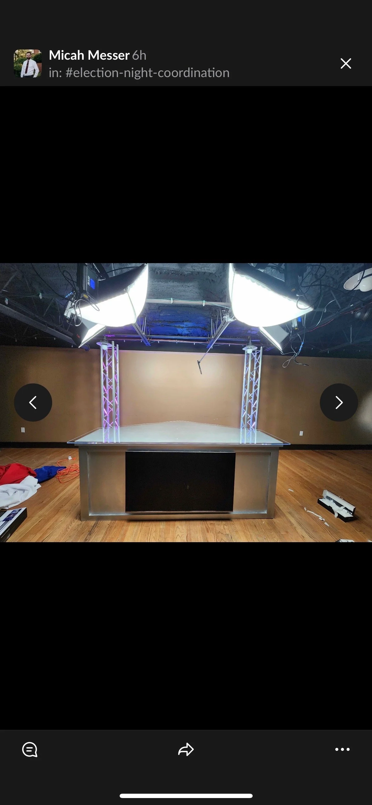 Live election coverage was launched from this desk that was designed to break down into six pieces for storage and transport to various venues!